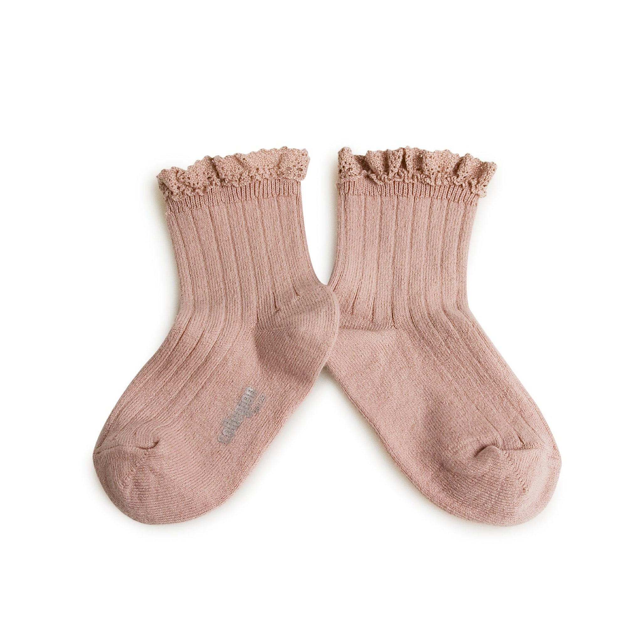 Lili - Lace Trim Ribbed Ankle Socks - Vieux Rose