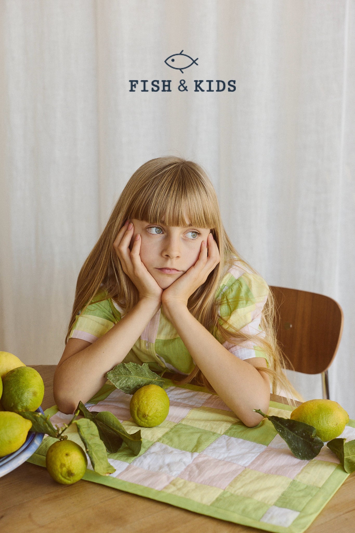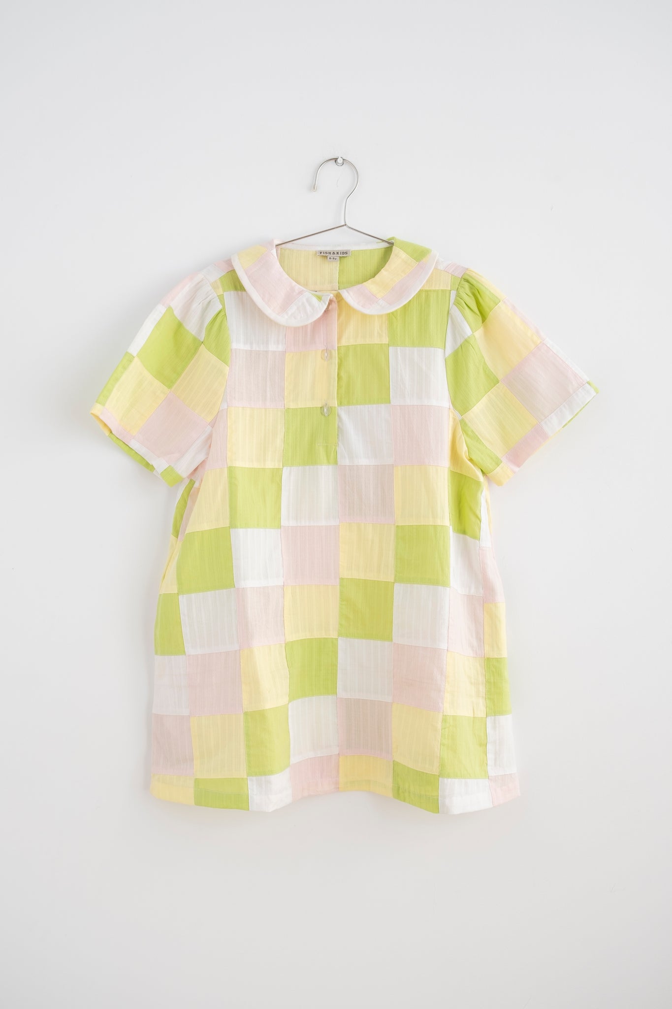 色の組み合わせがおしゃれなパッチワークのワンピース。