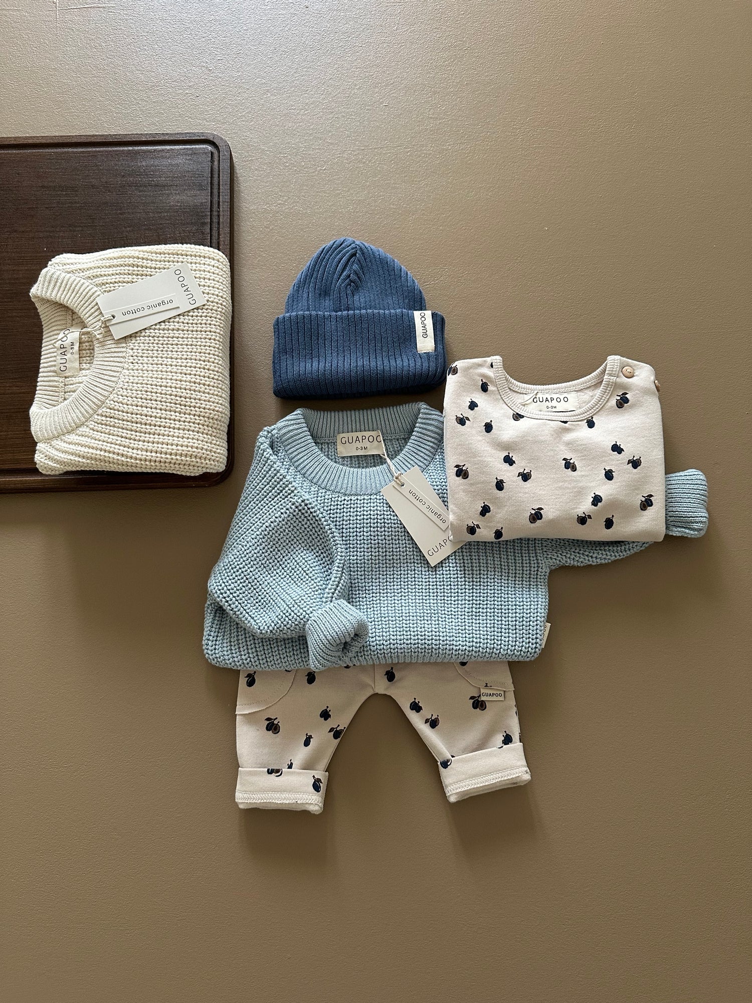 オーガニックコットン100%の素材で、ニットはチクチクせずさらっとした柔らかな着心地です。
