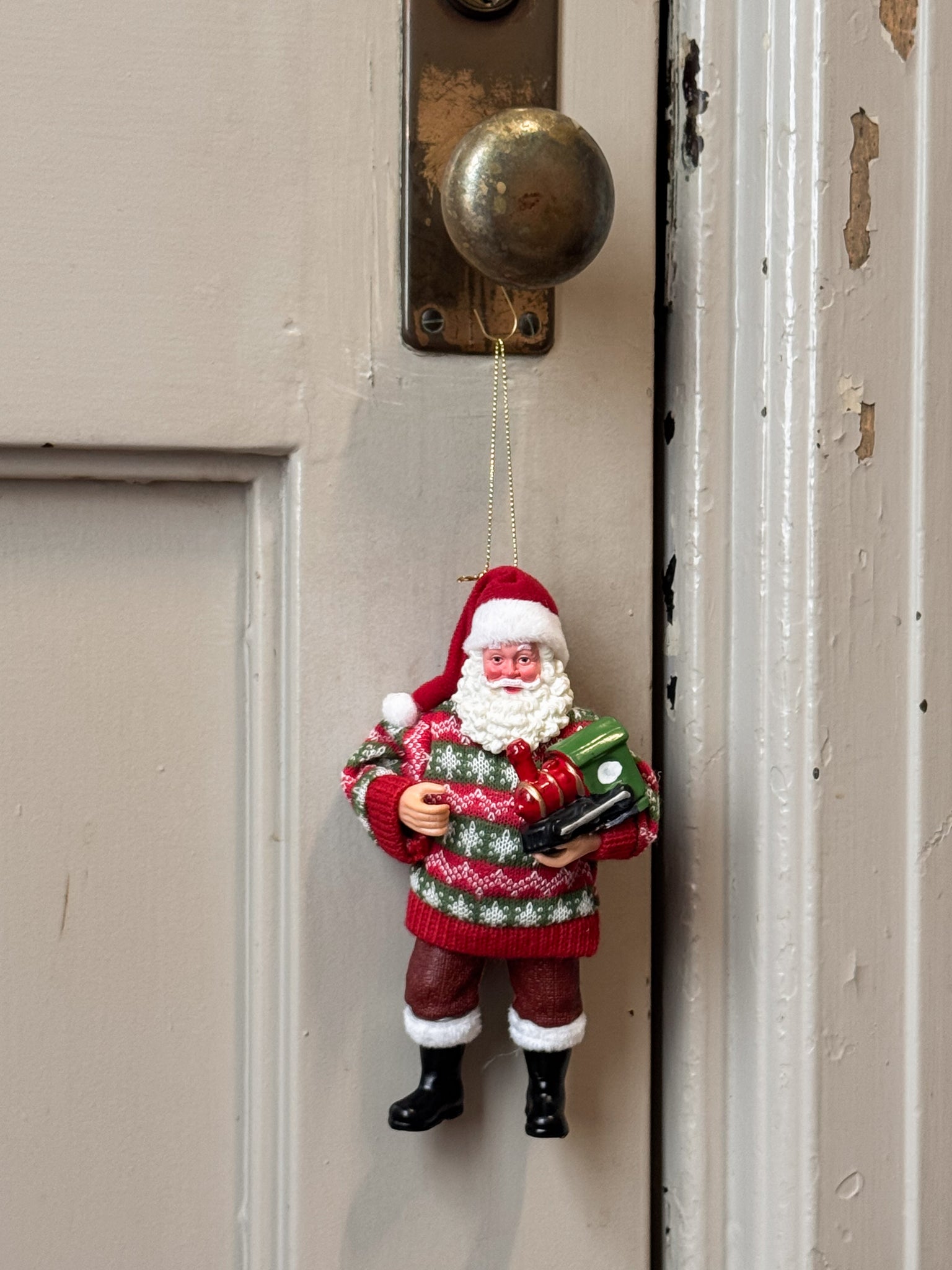 ニットのトップスを着たおしゃれなサンタのオーナメント。