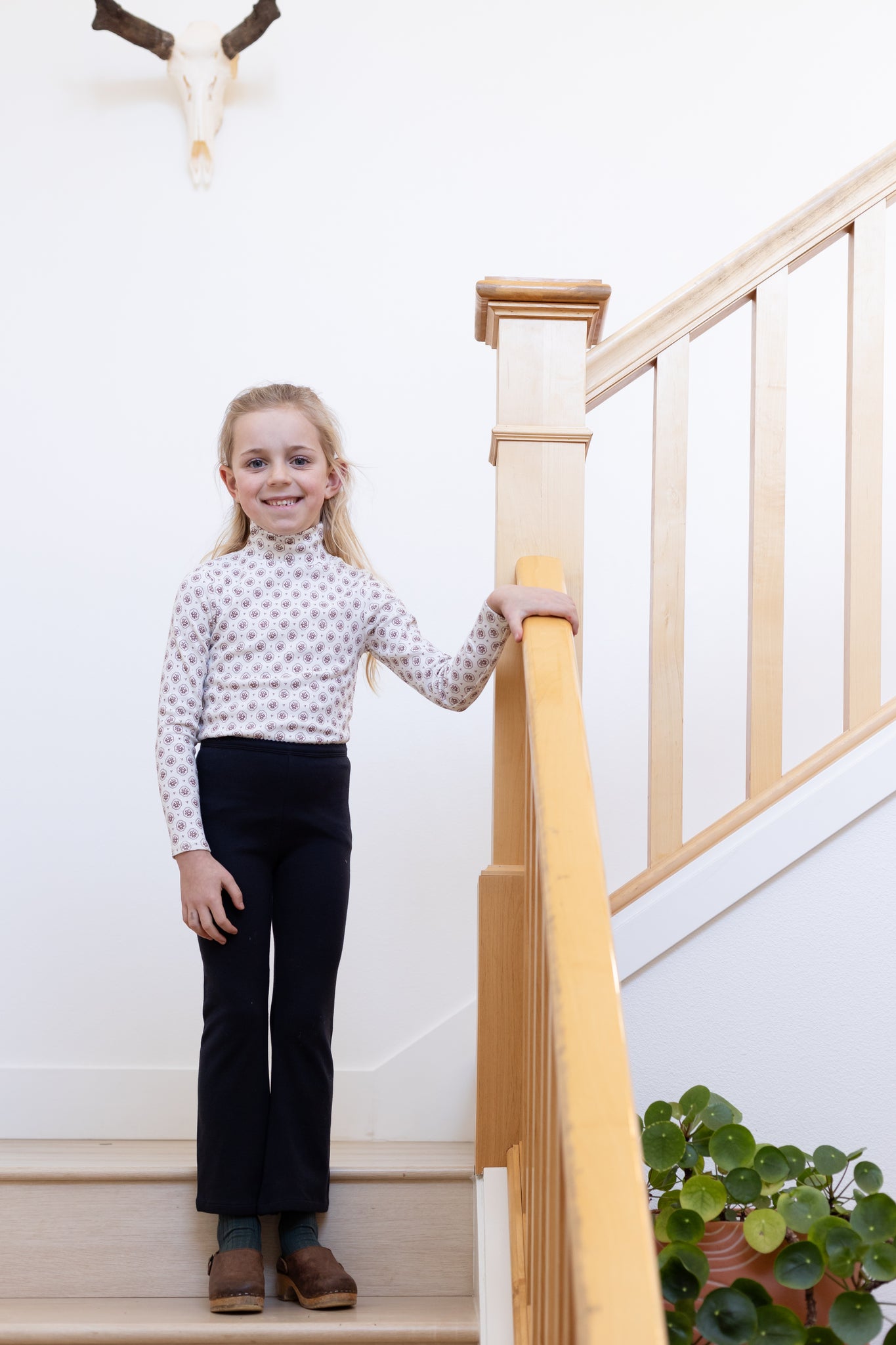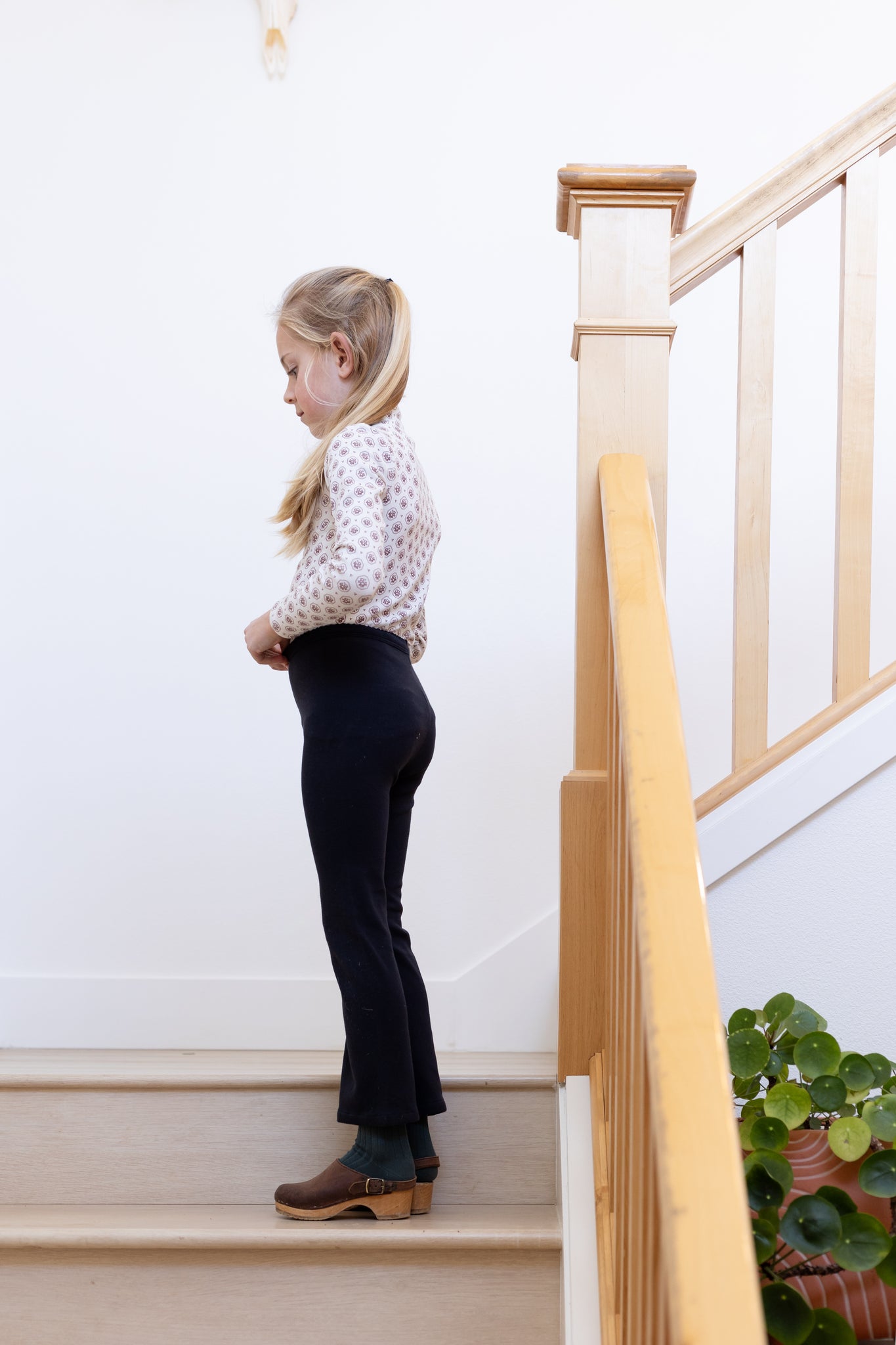 ワイドに拡がったフレアシルエットがかわいいパンツ。
