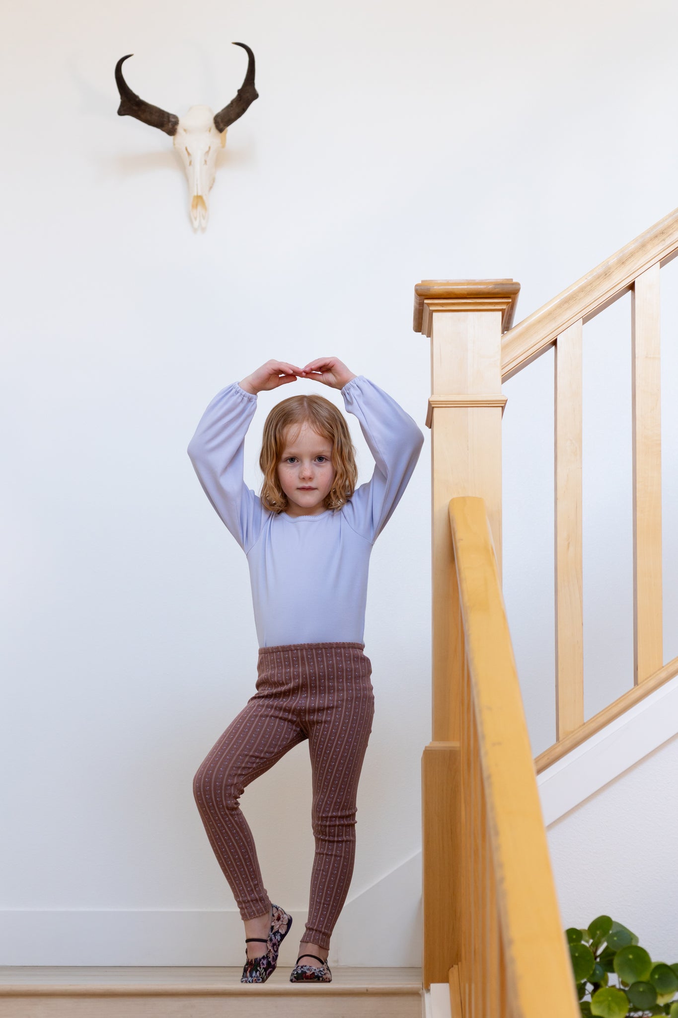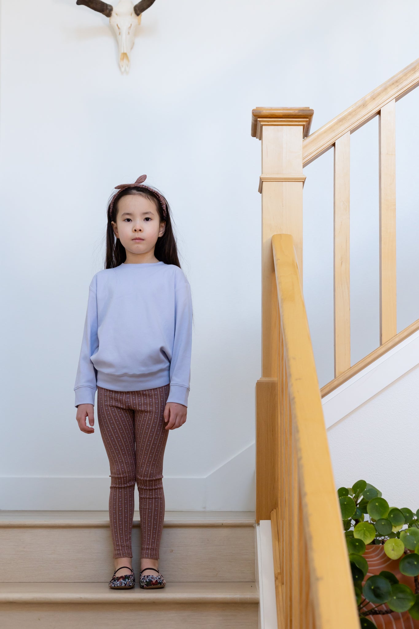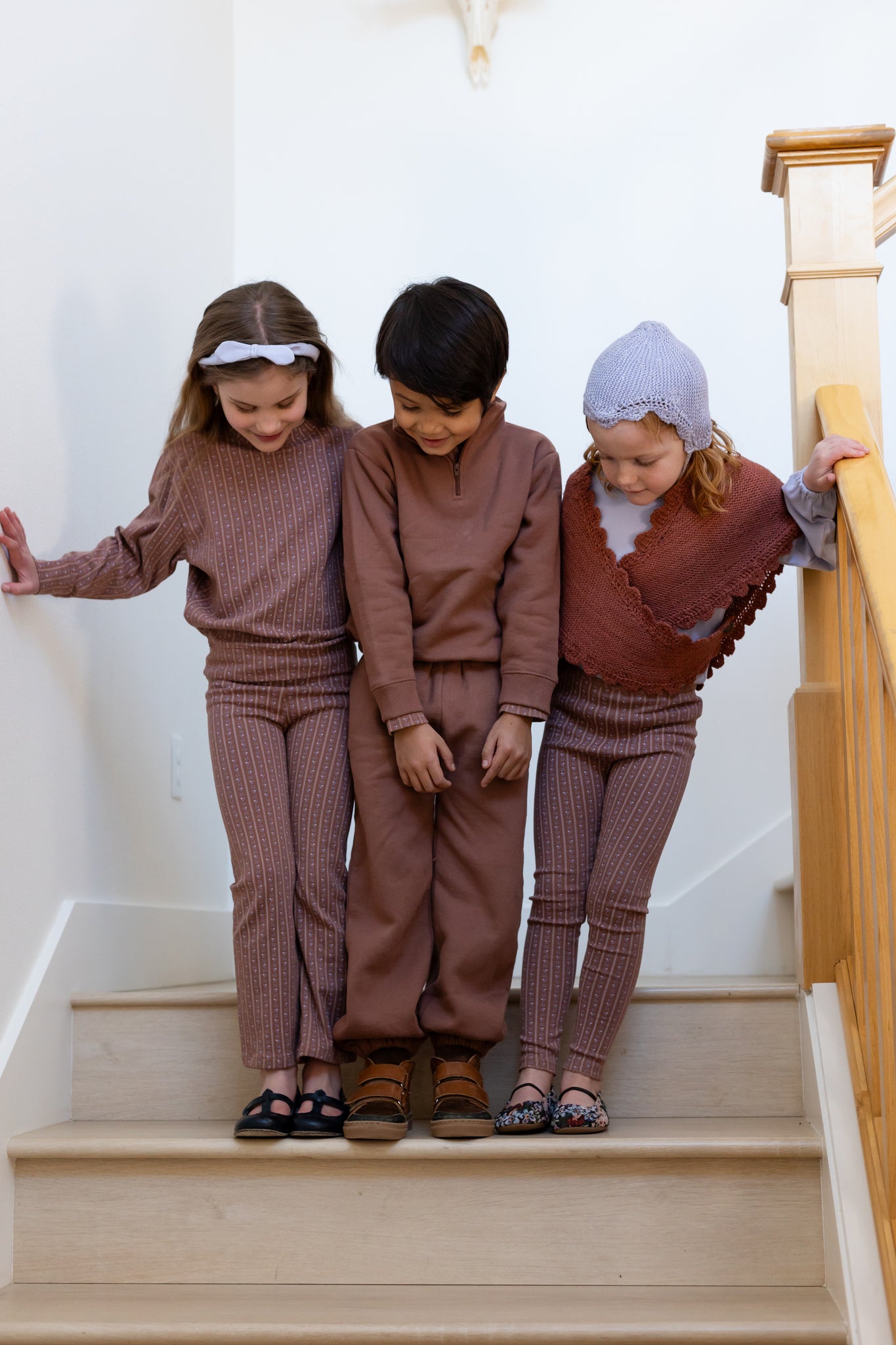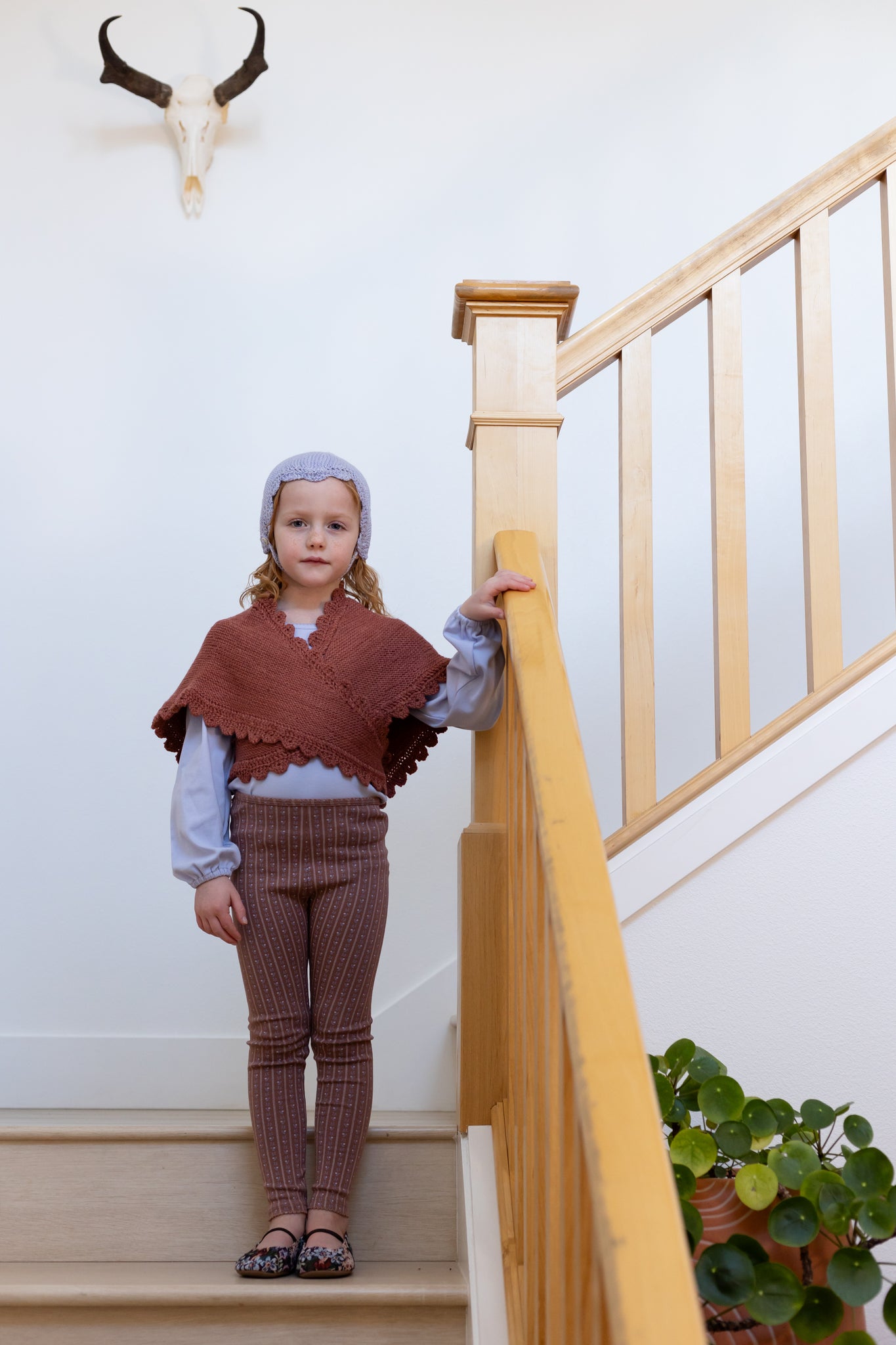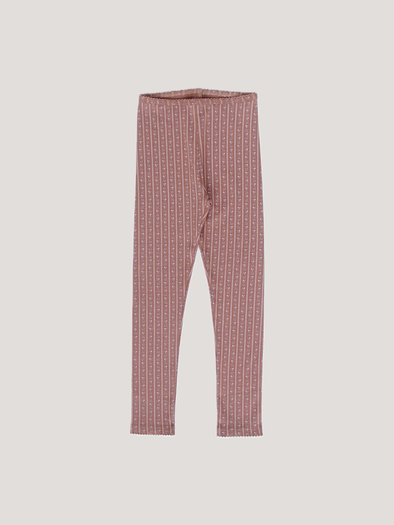 柔らなピマコットンにピコチェーンステッチの縁取りが施されたレギンス。