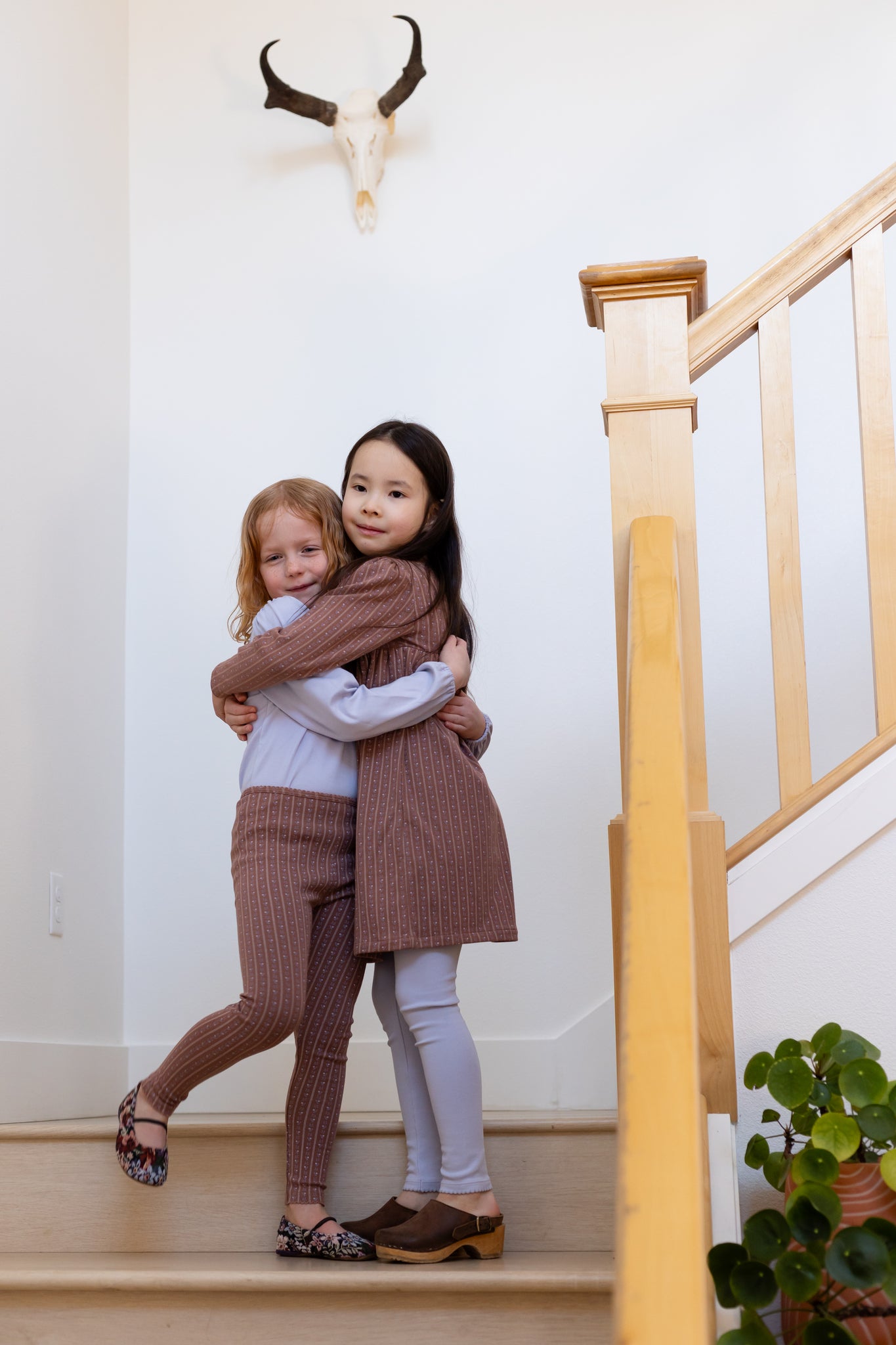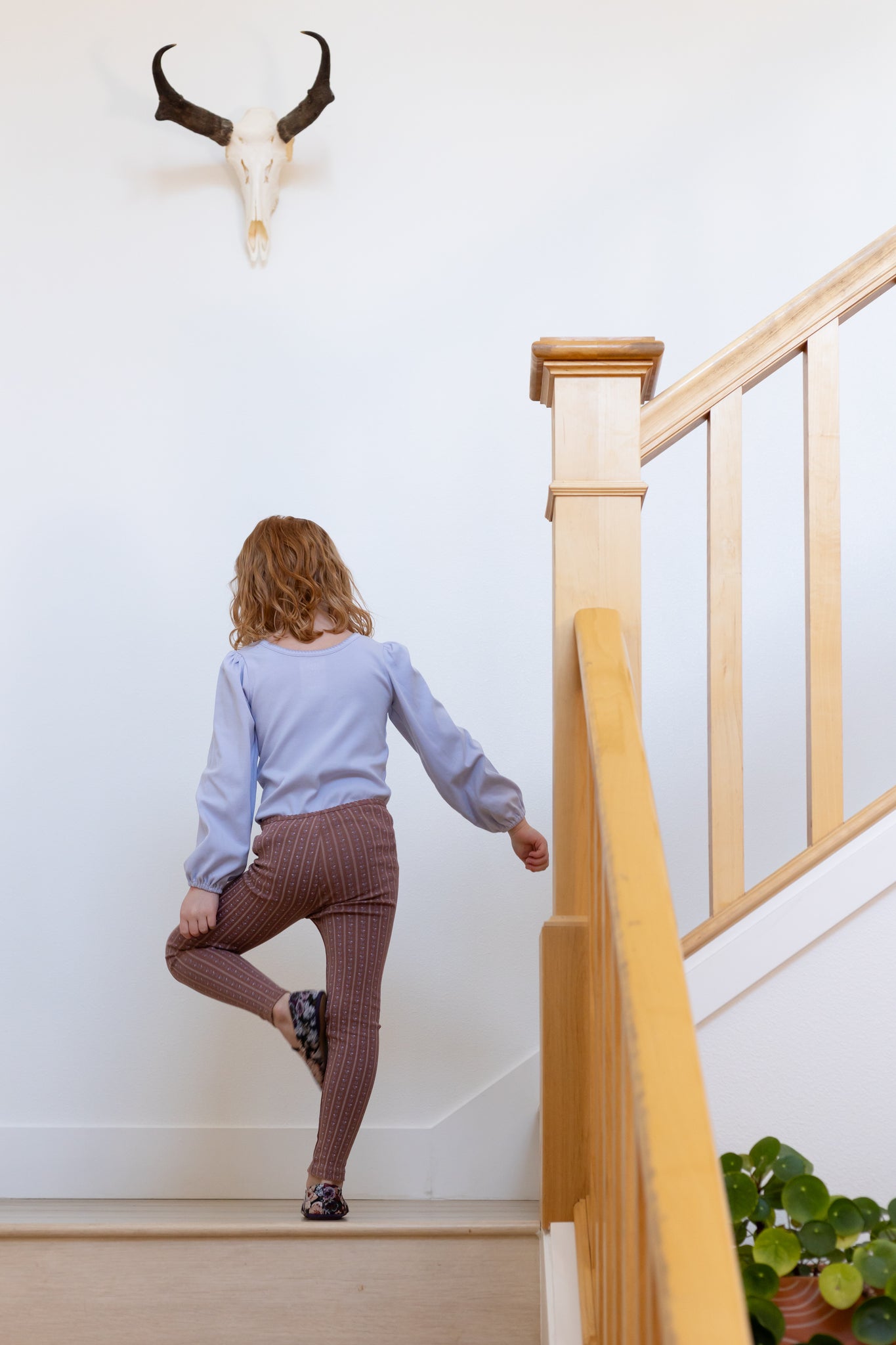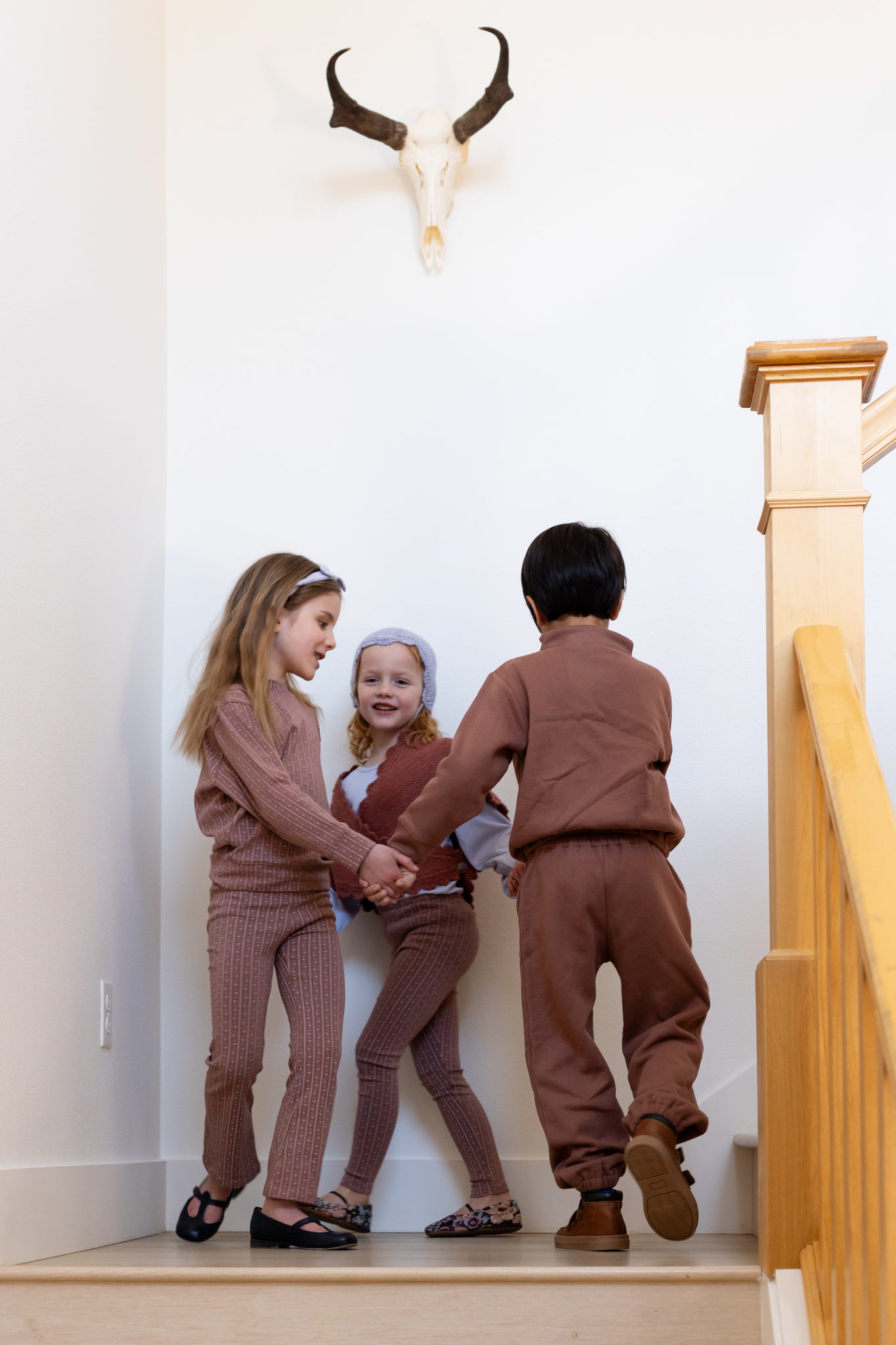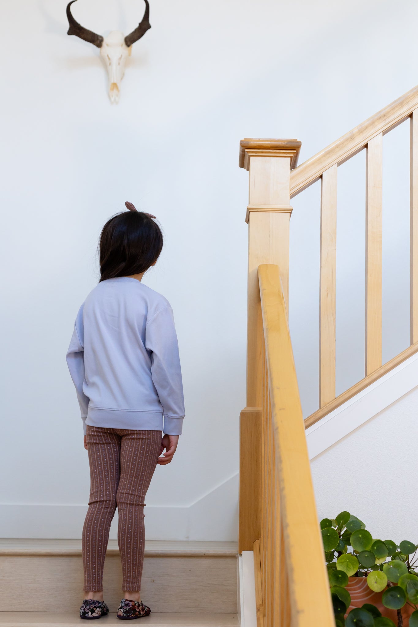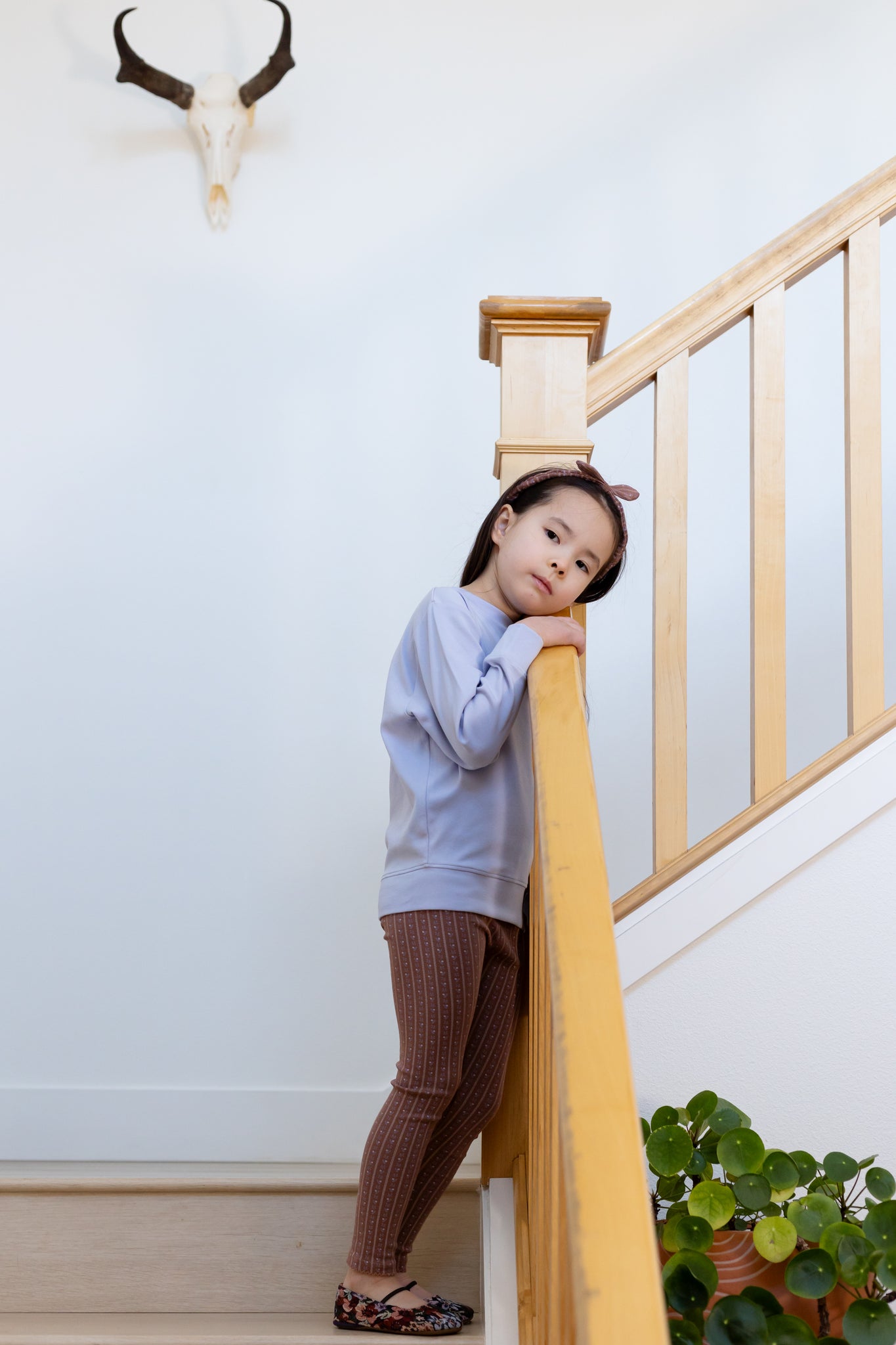 柔らなピマコットンにピコチェーンステッチの縁取りが施されたレギンス。