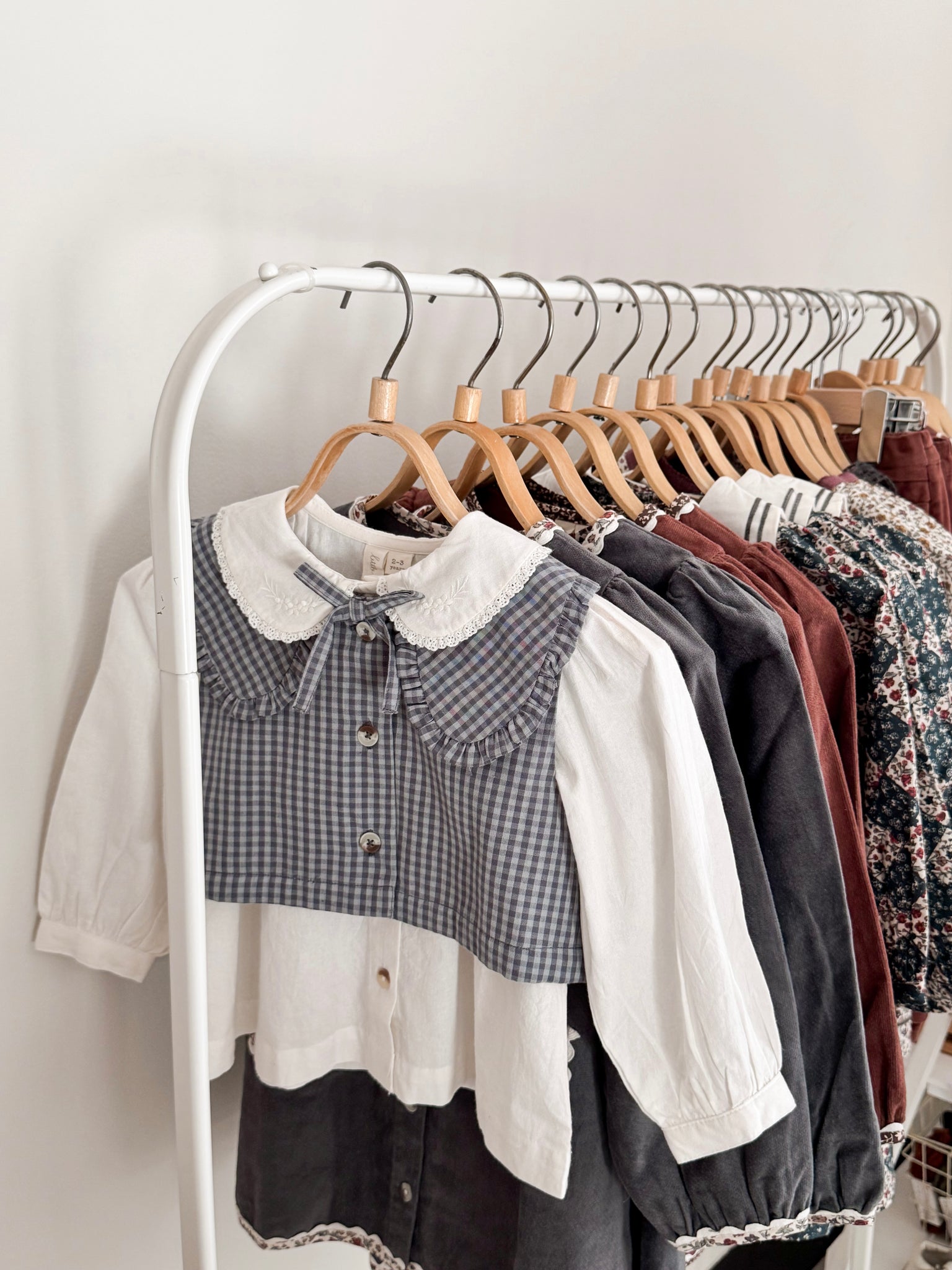ヴィンテージライクな雰囲気溢れるブルーチェックのブラウス。