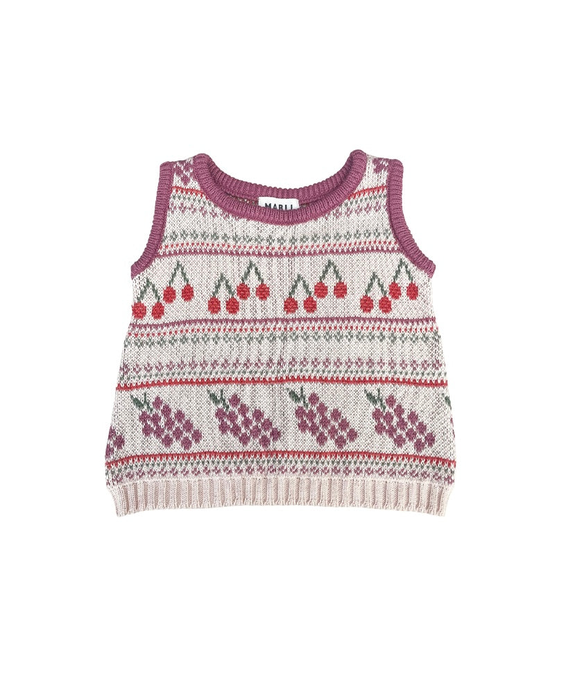 さくらんぼやぶどうのフルーツ柄が特徴のMIO VEST。