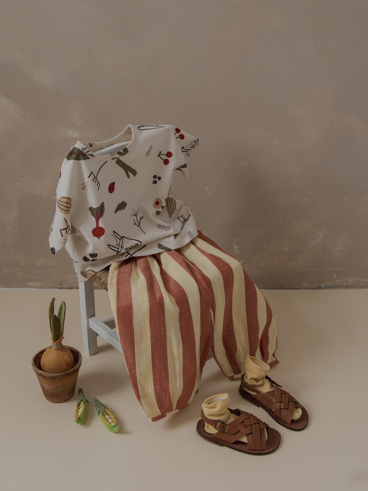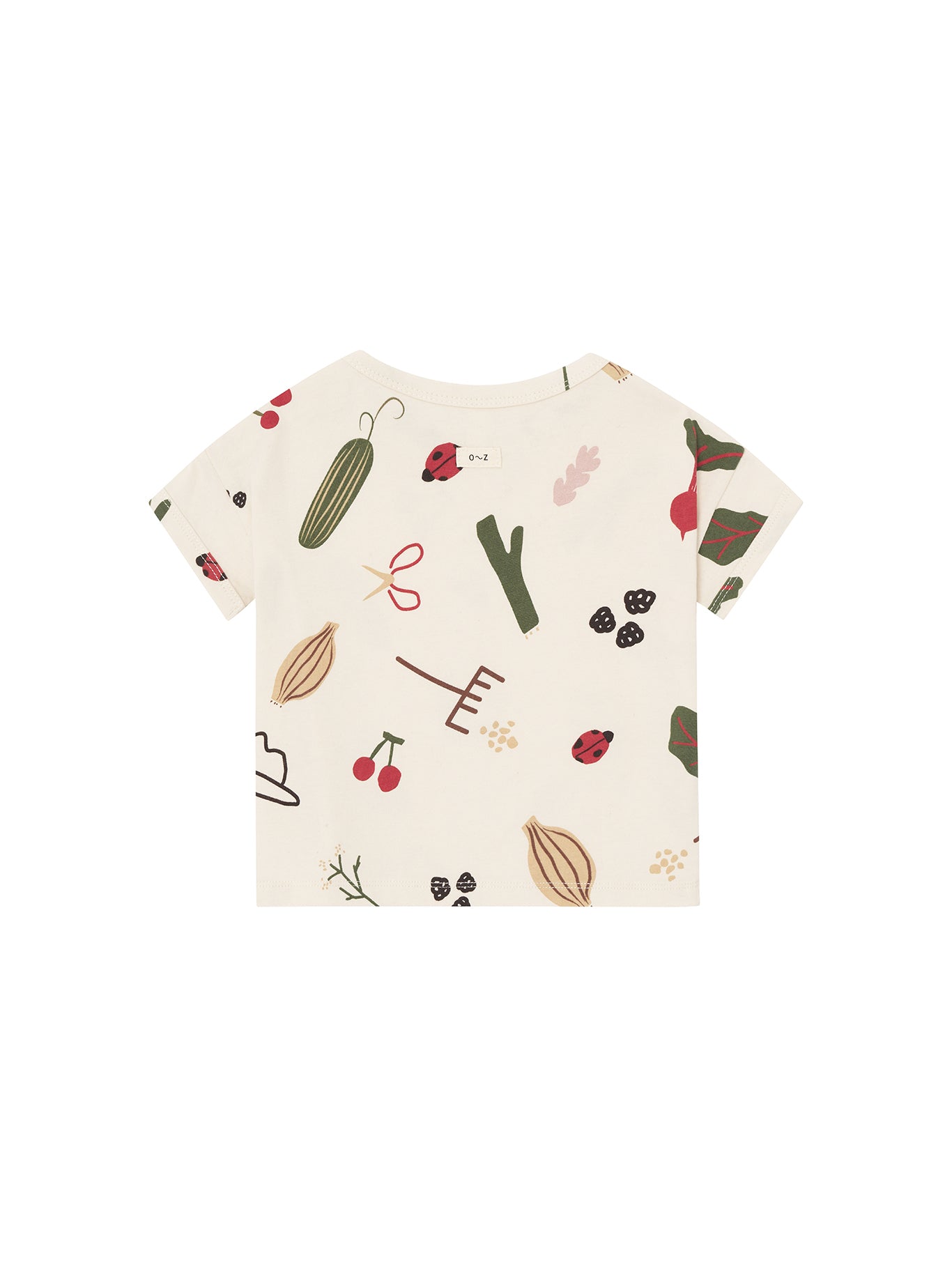 さくらんぼやてんとう虫や野菜など、自然をモチーフにしたプリントのトップス。