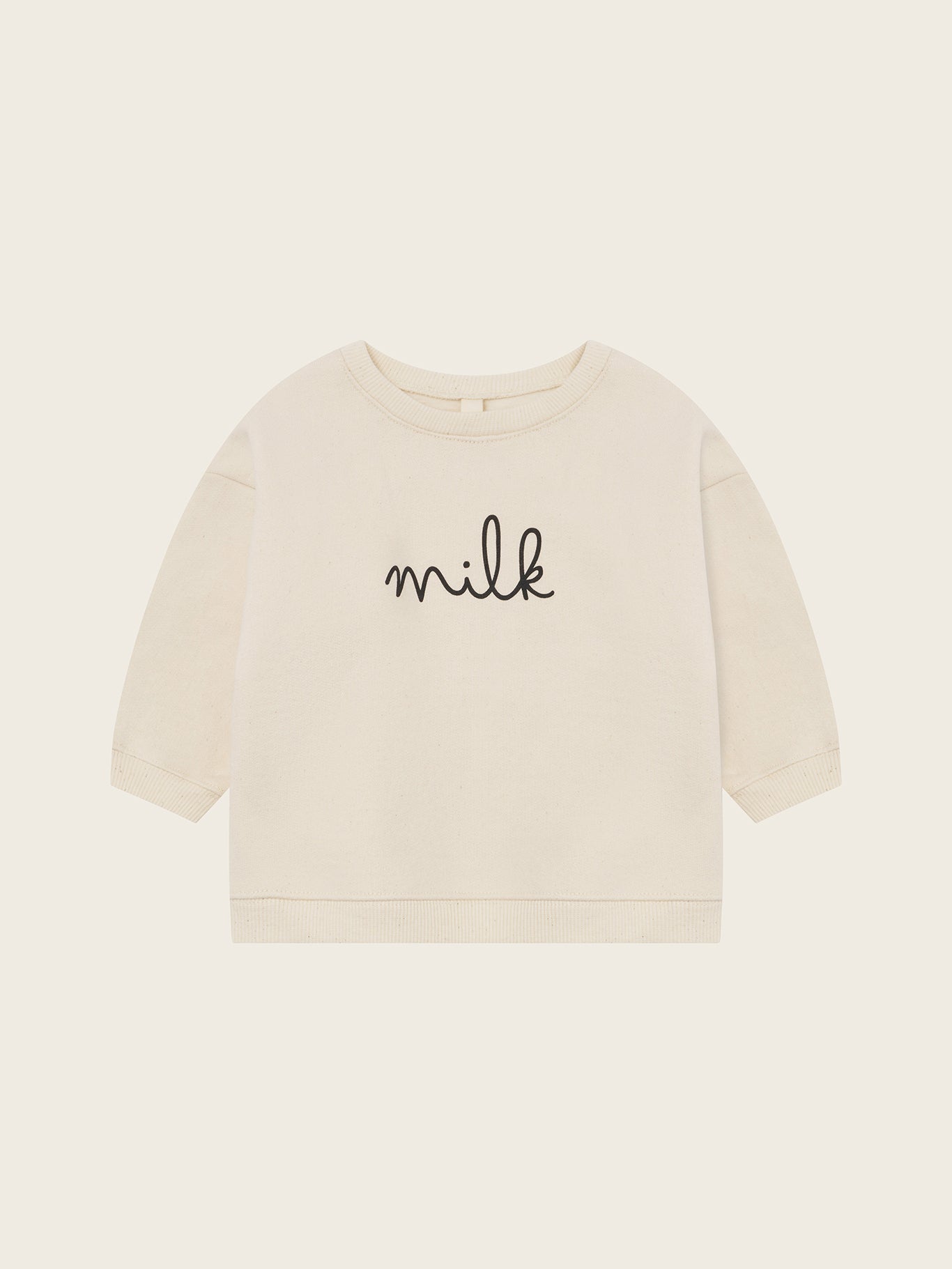 ナチュラルなカラーにmilkプリントがかわいい長袖トップス。