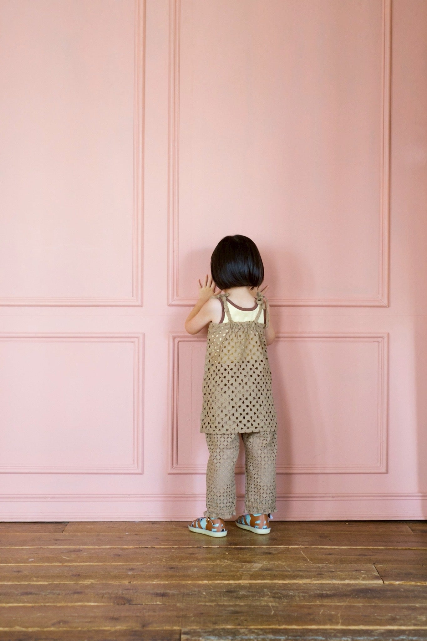 カットワーク仕上げのデザインがかわいいレースパンツ。