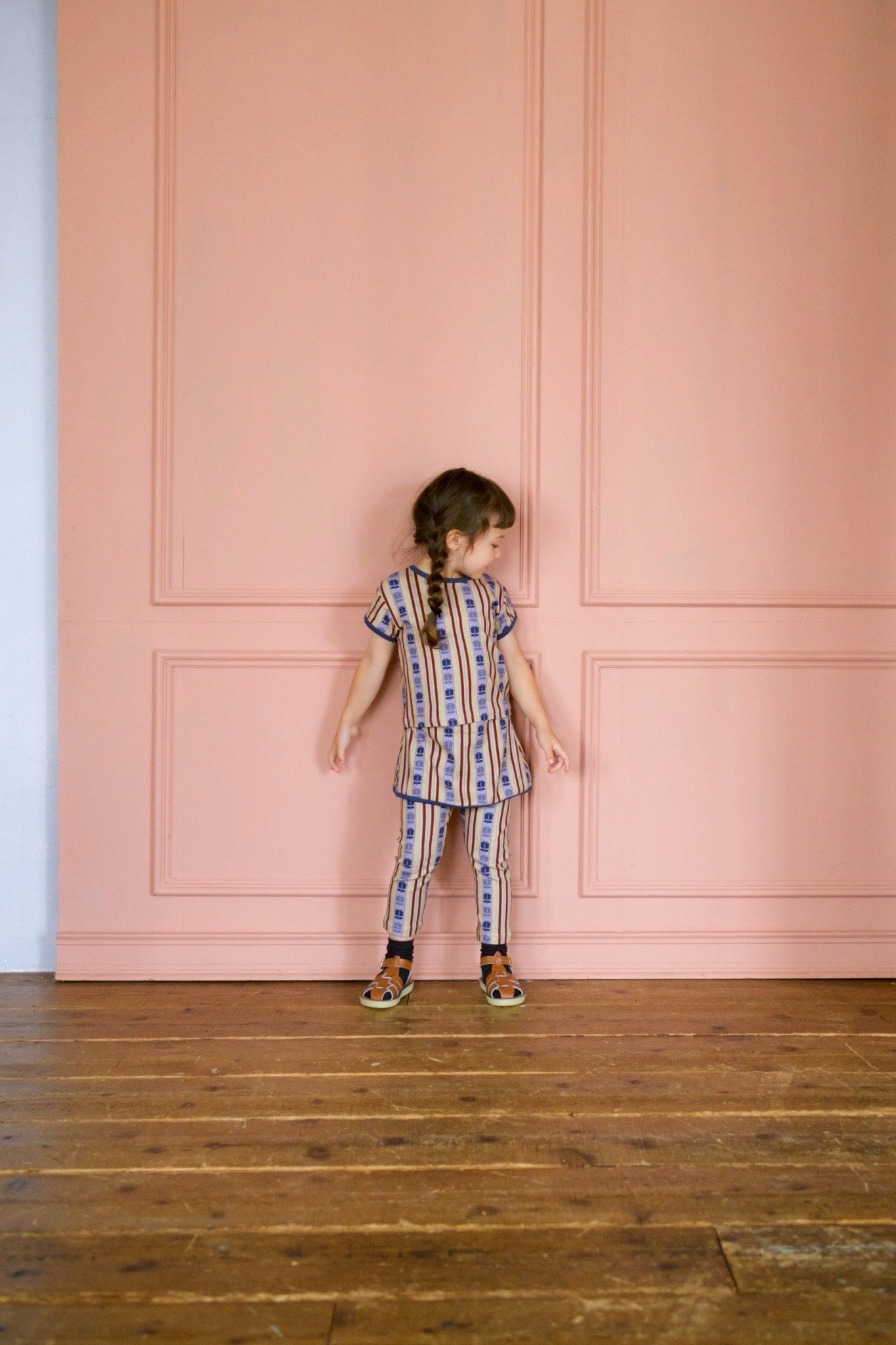 retro stripe skirted leggings / cream