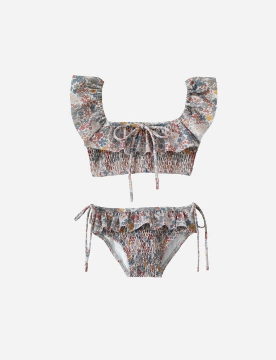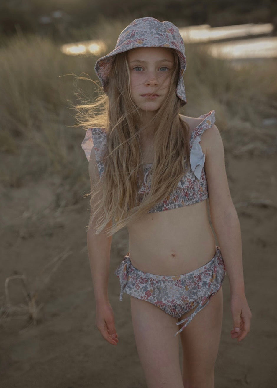 落ち着いたカラーのお花のプリントが特徴のビキニ。