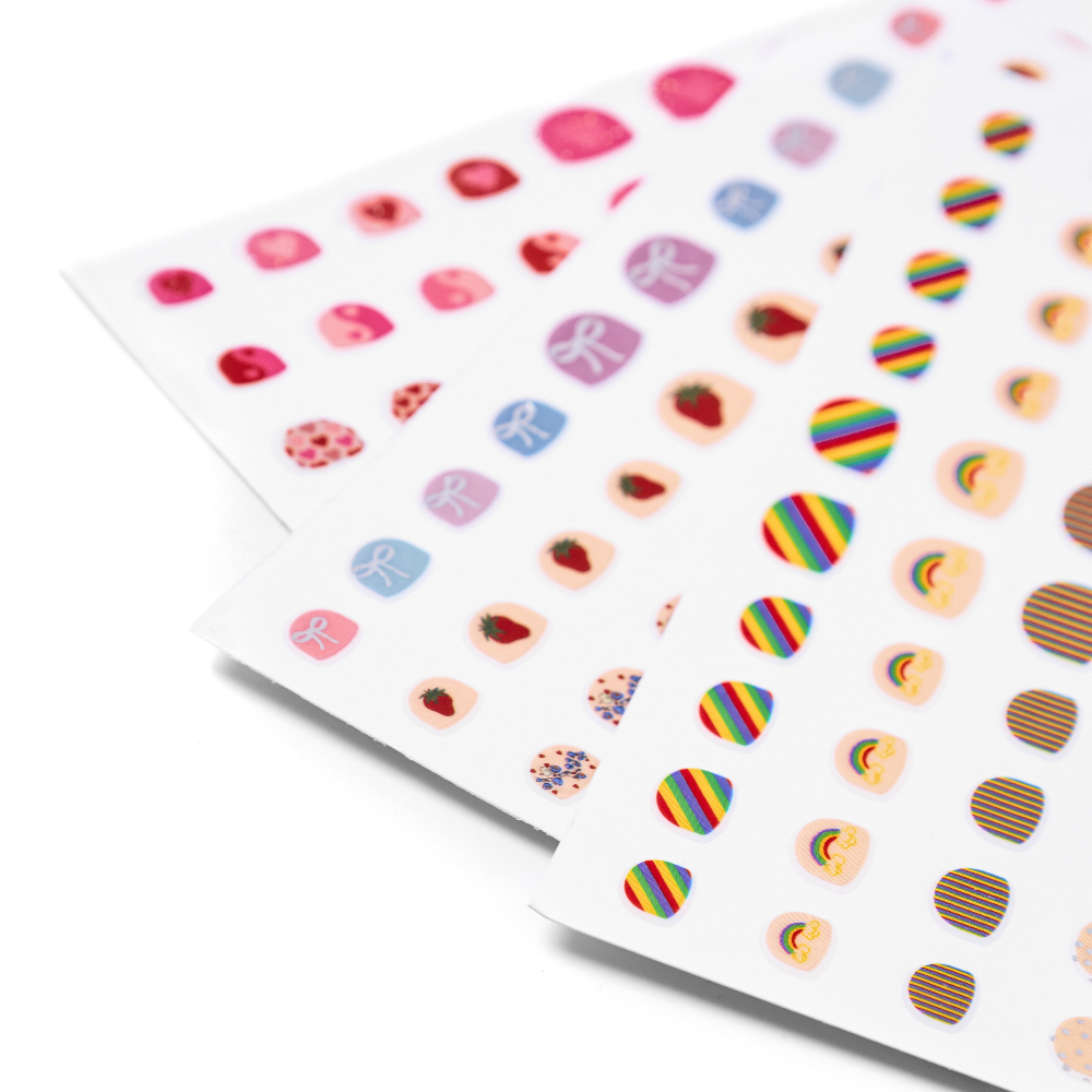 いちごやリボン、月柄などの3シート分がセットになったネイルステッカー。