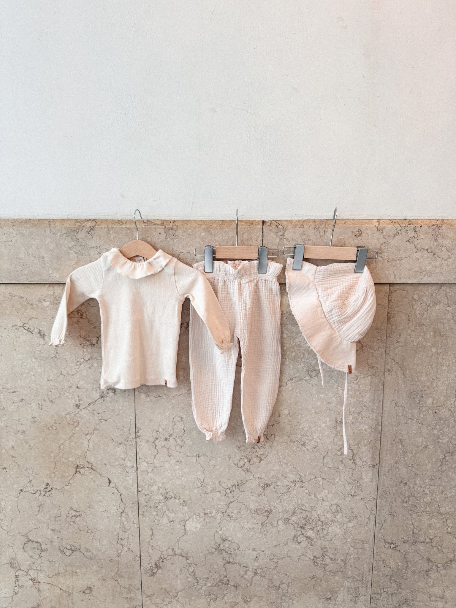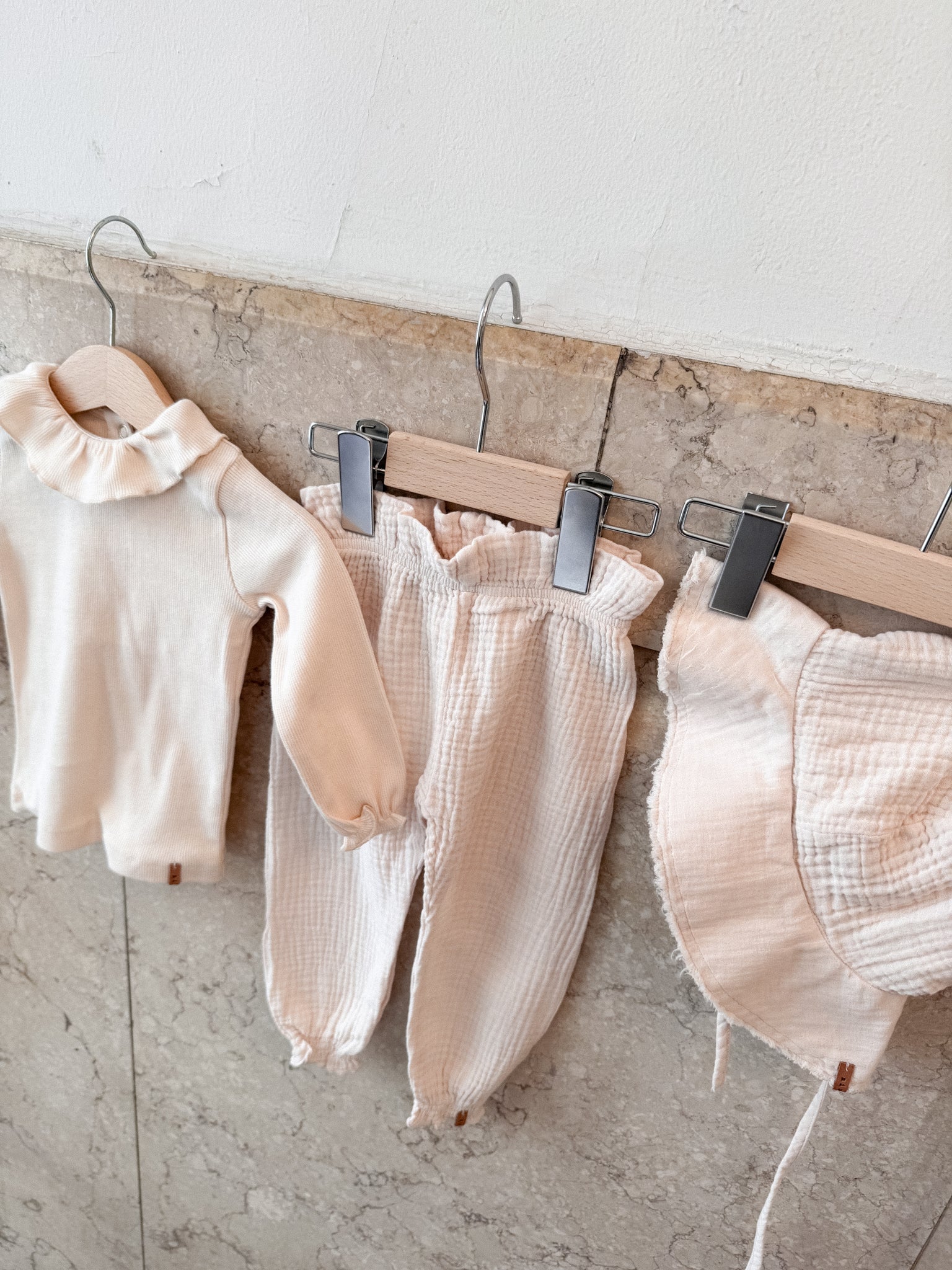 オーガニックコットンの素材を使用した柔らかな生地感で着心地が良いです。